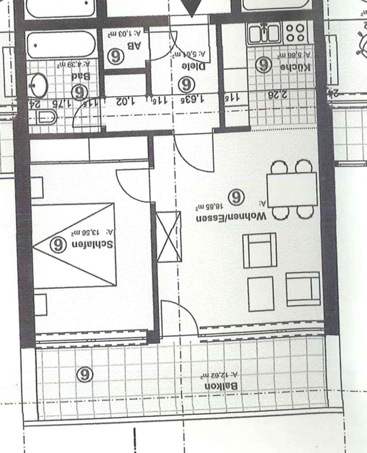 Der großzügige Wohn- und Essbereich bildet das Herzstück der Wohnung. Dank der offen gestalteten Küche entsteht hier ein modernes, kommunikatives Wohngefühl – ideal für gemütliche Abende oder geselliges Beisammensein. Vom Wohnbereich aus gelangt man direkt auf den großen Balkon, der viel Platz zum Entspannen bietet und den Wohnraum wunderbar nach außen erweitert.