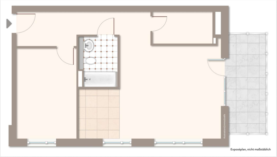 Die Wohnung wird derzeit noch möbliert dargestellt und wird weitgehend geräumt übergeben. Über den Verbleib der vorhandenen Küche kann im Einzelfall abgestimmt werden..